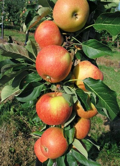 Stubasta jabuka Polka je kompaktna jesenja sorta sa atraktivnim plodovima, pogodna za male prostore i gustu sadnju.